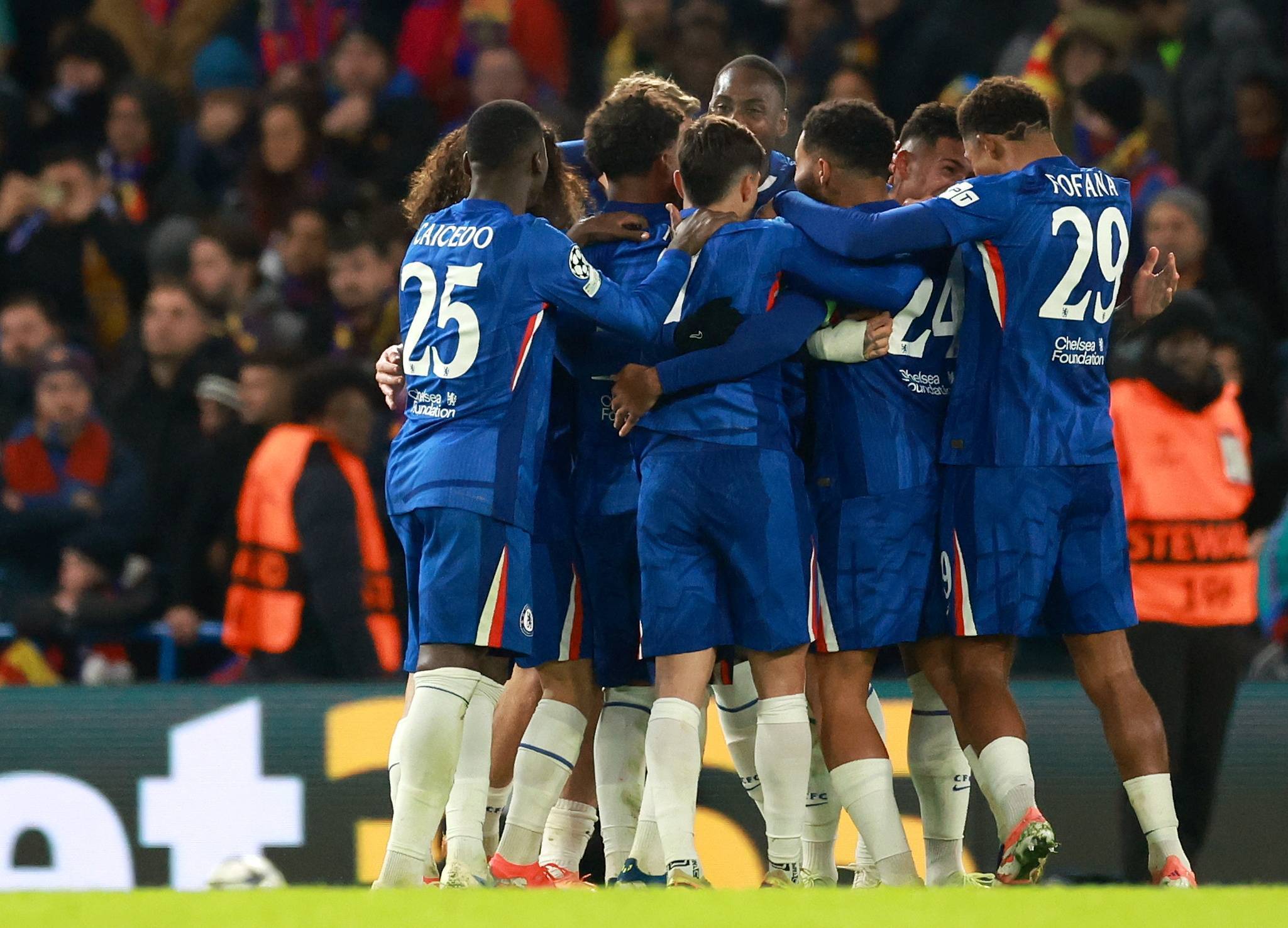 11月25日,切尔西队球员庆祝攻入第三球。 新华社/欧新