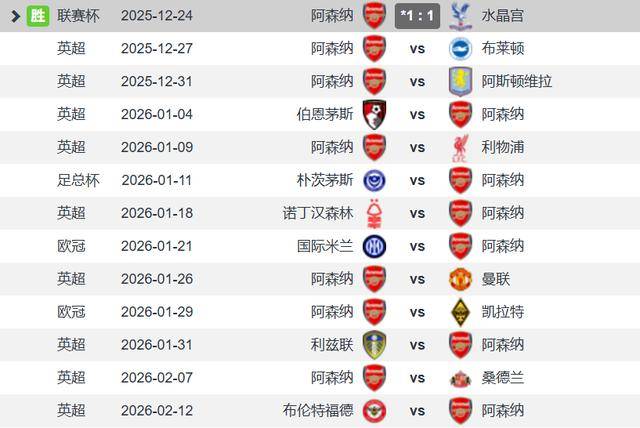 圣诞冠军阿森纳4线争冠1月要踢9场平均3-4天一场不掉链子就争冠